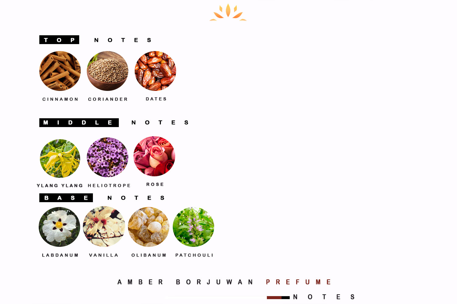 Base : Labdanum, olibanum and patchouli , Dried Fruits