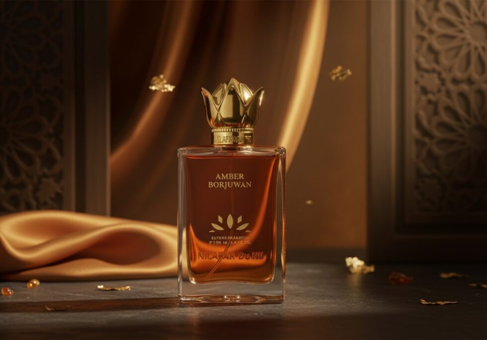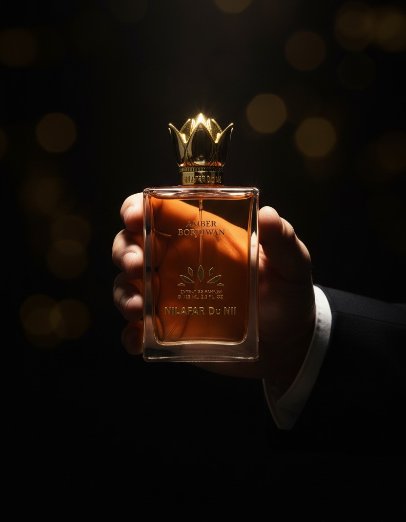 Amber Borjuwan by Nilafar Du Nil is a unisex extrait de parfum with a warm, amber-vanilla profile shaped by dried fruits and spice. It opens with dates, cinnamon, coriander, and dried fruits, moving to a floral heart of rose, ylang-ylang, and heliotrope. The base highlights labdanum and vanilla with resinous olibanum and earthy patchouli. According to the brand, the composition references the historic Borjuwan quarter of Fatimid Cairo, evoking the mingled aromas of spice shops and traditional sweets such as qamar al-din (apricot paste).