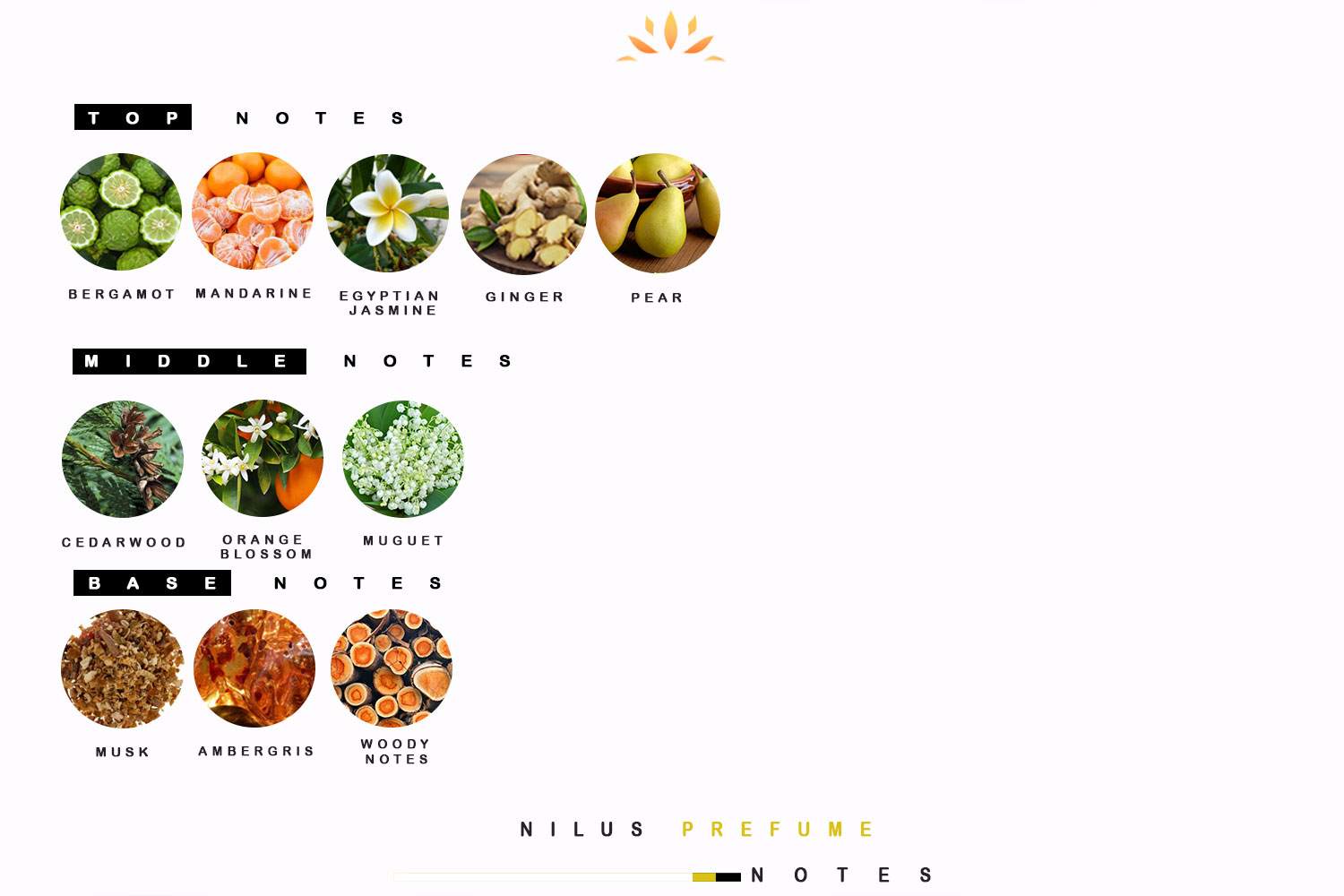 Top: Bergamot, Mandarin, Pear, Ginger.